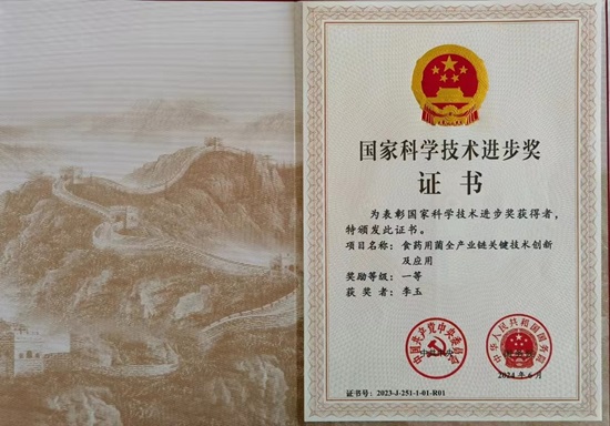 第九届中国侨界贡献奖一等奖获得者、中国工程院院士、吉林农业大学教授李玉领衔申报的《食药用菌全产业链关键技术创新及应用》项目荣获国家科学技术进步一等奖。