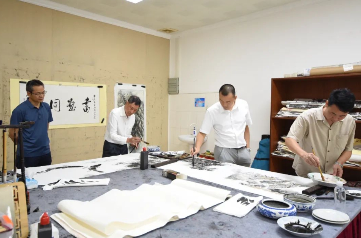 仪式上,区本分别向肇庆市美术家协会、肇庆市书法家协会、高要区黎雄才艺术馆赠与其书画作品,并邀请艺术家们现场激情挥毫泼墨,以笔墨架桥、书画会友,共同描绘新时代肇庆高质量发展新征程的美好图景。