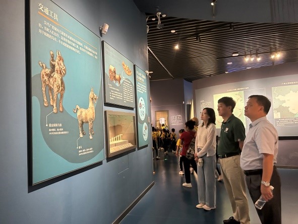 在南宁期间,调研组赴广西壮族自治区博物馆参观广西古代文明陈列、合浦启航——广西汉代海上丝绸之路陈列、烽火南疆——广西近现代革命史陈列和“国宝沉浮——圆明园兽首暨回流文物特展”。调研组认为,广西凭借地理位置和历史底蕴拥有独特的侨史资源和侨文化特色,加强涉侨文物保护利用,推进侨乡文化传承发展,活化华侨文化资源,是涉侨文博工作应重点关注的方向。