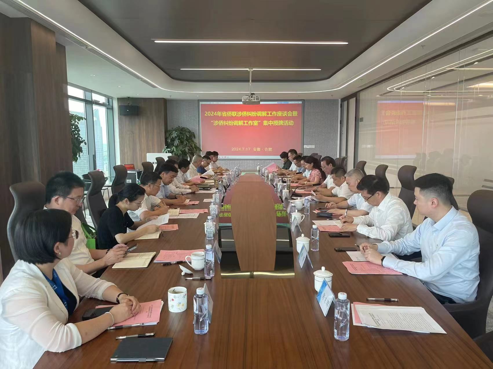 7月17日下午,2024年安徽省侨联涉侨纠纷调解工作座谈会暨“涉侨纠纷调解工作室”集中授牌活动在合肥举行。安徽省司法厅党委书记、厅长罗建华,省侨联党组书记、主席李世蕴出席活动并讲话,司法厅党委委员、副厅长、一级巡视员胡孔胜出席活动,侨联法律顾问委员会部分副秘书长、委员,以及在肥涉侨纠纷调解工作室代表共约30人参加。活动由省侨联党组成员、专职副主席兼秘书长刘君主持。