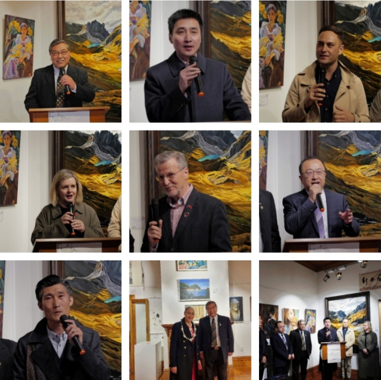 中国驻奥克兰总领事馆副总领事王俊超,国会议员:Hon. Jenny Salesa,Mr. Shanan Halbert,Ms. Camilia Belich,新中友协奥克兰分会副主席兼秘书长Mr. Leo de Graaf,奥克兰中国文化中心主任王建文,新西兰画笔美术学校校长王延珂出席并致辞。共同感谢主办方,协办方,后援方,赞助单位,媒体,美术作者,志愿者的努力和奉献。预祝画展圆满成功。