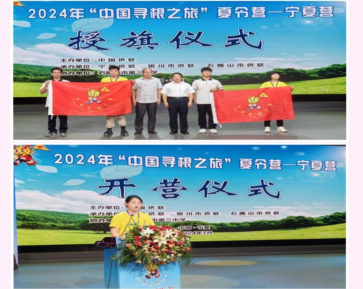 7月25日,由中国侨联主办、宁夏侨联承办的2024年“中国寻根之旅”夏令营——宁夏营在石嘴山市正式开营。来自美国、英国、加拿大、德国、日本等5个国家的49名海外华裔青少年营员、领队与石嘴山市第三中学的师生们齐聚塞上湖城,共同开启中华文化体验之旅。宁夏回族自治区党委统战部、外事办、教育厅、侨联及石嘴山市委统战部、市侨联等部门有关负责同志出席开营仪式。