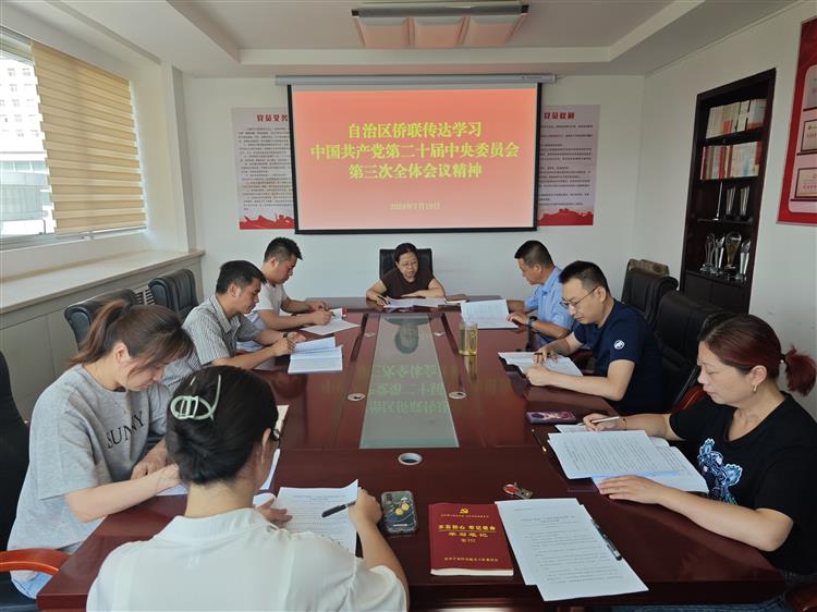 7月19日上午,宁夏回族自治区侨联召开传达学习党的二十届三中全会精神会议,组织机关全体党员干部职工第一时间深入学习研读全会《公报》全文。