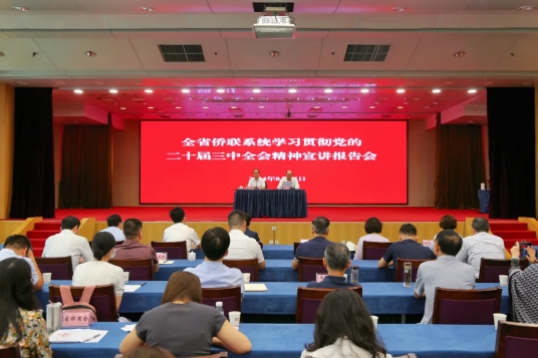 为深入学习贯彻党的二十届三中全会精神,8月15日上午,江苏省侨联举办全省侨联系统学习贯彻党的二十届三中全会精神宣讲报告会,省委宣讲团成员、省委统战部常务副部长顾万峰作宣讲报告。省侨联党组书记、主席刘标主持会议。省、市和部分县(区)三级侨联机关干部职工、侨界群众代表共600余人以线下与线上相结合的方式参加。