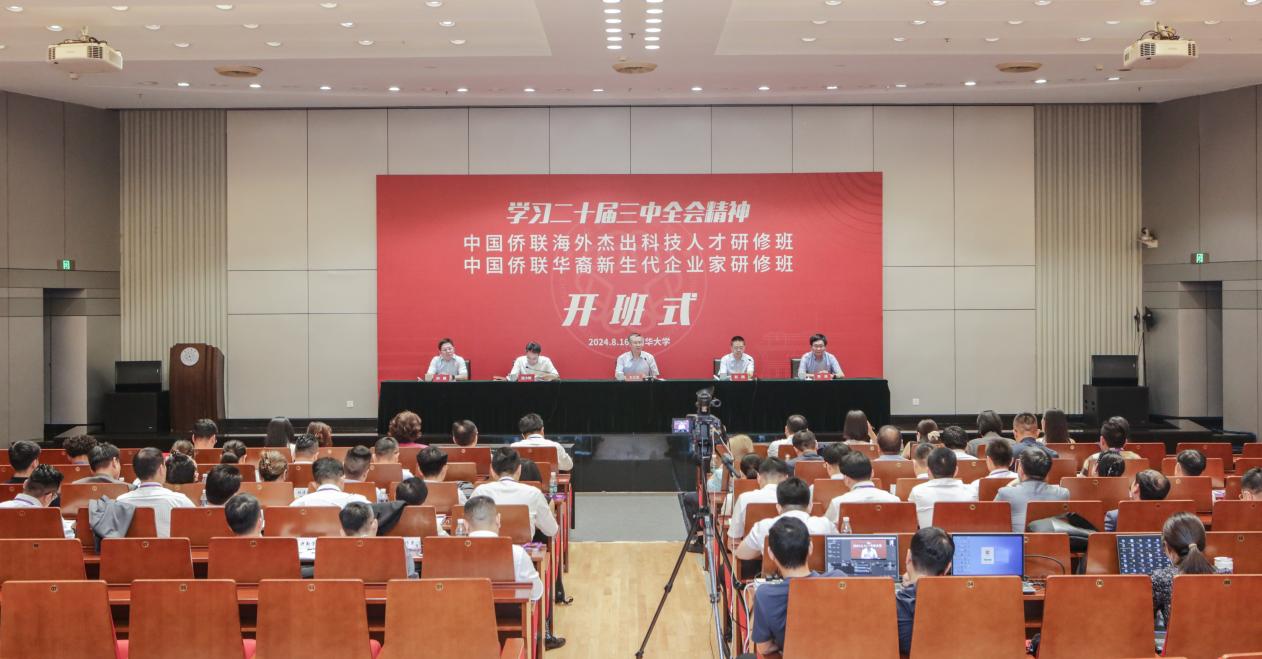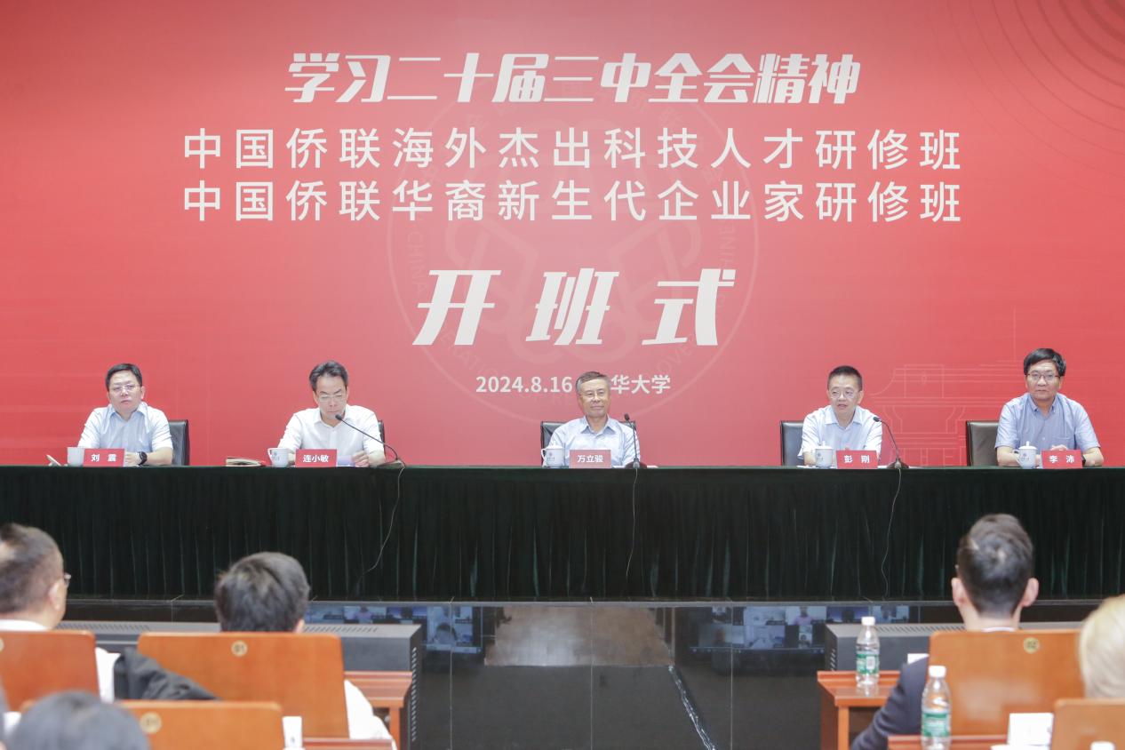8月16日上午,中国侨联海外杰出科技人才研修班(线上)、华裔新生代企业家研修班(线下)在清华大学开班。中国侨联党组书记、主席万立骏出席开班式并作“凝侨心助改革发展,集侨智促科技创新,为中国式现代化作出侨界新贡献”主题报告,希望研修班学员和广大侨胞学习领会二十届三中全会精神,凝聚侨心、汇聚侨智、发挥侨力,为进一步全面深化改革、推进中国式现代化贡献侨界力量。中国侨联党组成员、副主席连小敏主持开班式,清华大学党委常委、副校长彭刚出席开班式并致辞。