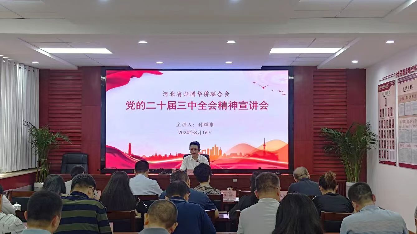 8月16日下午,河北省侨联召开党的二十届三中全会精神宣讲会。省侨联党组书记、主席付辉东主持会议并就党的二十届三中全会精神作宣讲。