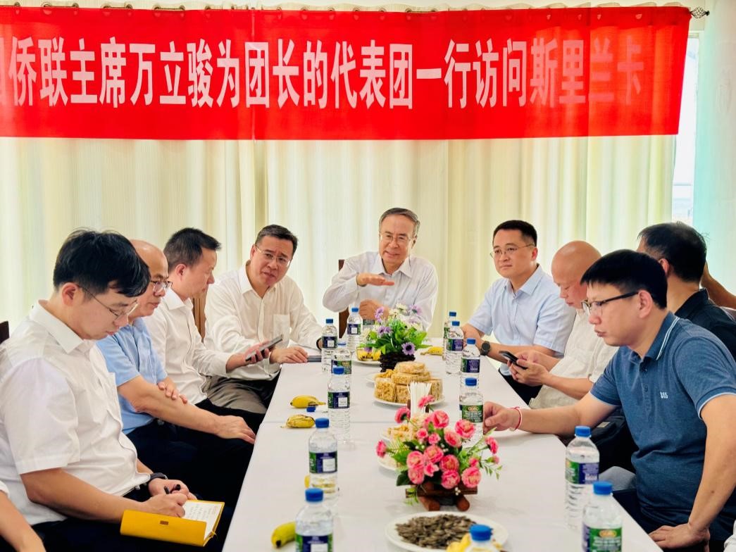 在斯里兰卡,万立骏一行走访斯里兰卡华侨华人联合会、中文学校,看望南部城市华侨华人,参观中斯共建的科伦坡港口城,考察侨胞企业。他表示,中斯两国的传统友谊凝结着两国几代领导人的心血,体现了两国人民的共同愿望,需要我们倍加珍惜、悉心呵护。高质量共建“一带一路”,不仅可以造福两国人民,也为华侨华人在当地发展事业创造广阔空间。
