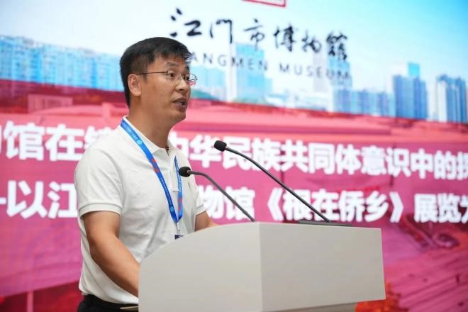 中国博协侨博专委会副主任委员、江门市博物馆馆长高东辉以《试谈华侨类博物馆在铸牢中华民族共同体意识中的作用——以江门市博物馆“根在侨乡”展览为例》为题作交流发言。他表示,“根在侨乡”陈列展示了华侨华人对中华民族共同体的民族认同、文化认同,基于展览的教育实践增强了华侨华人的中华民族共同体意识。华侨博物馆在铸牢中华民族共同体意识中能够发挥独特作用,需要引起重视并加强相关研究,探索华侨博物馆深度参与铸牢实践的优势和特点,以及行之有效的工作方法和模式。