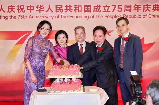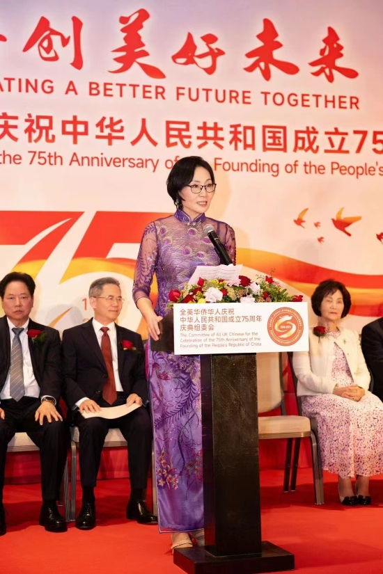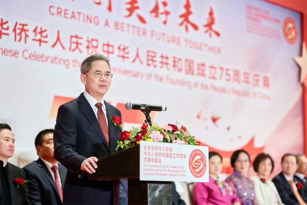 近日,全英华侨华人庆祝中华人民共和国成立75周年庆典在伦敦举行。中国驻英国大使郑泽光,庆典筹委会主委、英中律师协会会长朱小久,伦敦华埠商会主席邓柱廷,英国中国商会会长方文建,以及全英各地近百个侨团负责人等各界嘉宾700余人参加。