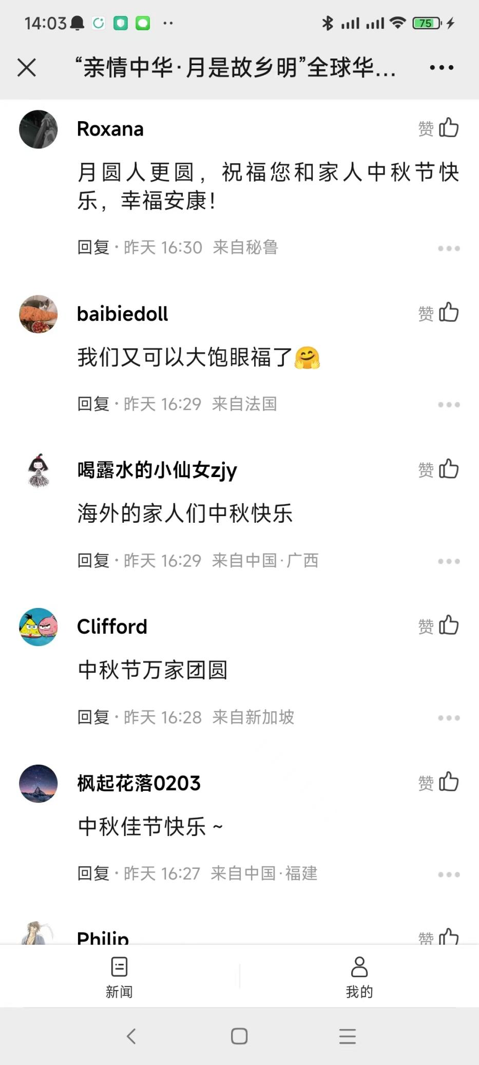 泰国侨胞刁刻佳说:在这花好月圆的美好时刻,我们迎来了中秋佳节和祖国75岁生日。许多贵州老乡相聚一起观看中国侨联和贵州省侨联在贵阳举办的中秋联欢会,万主席的致辞让我们深刻感受到了祖国对海外侨胞的深切关怀。多彩贵州,“醉”美贵阳,名副其实,画面的内容让我们瞬间激起了家乡的山山水水,亲人朋友的思念,感受到了来自祖国的惦念和海外侨胞的娘家人侨联组织的关怀。