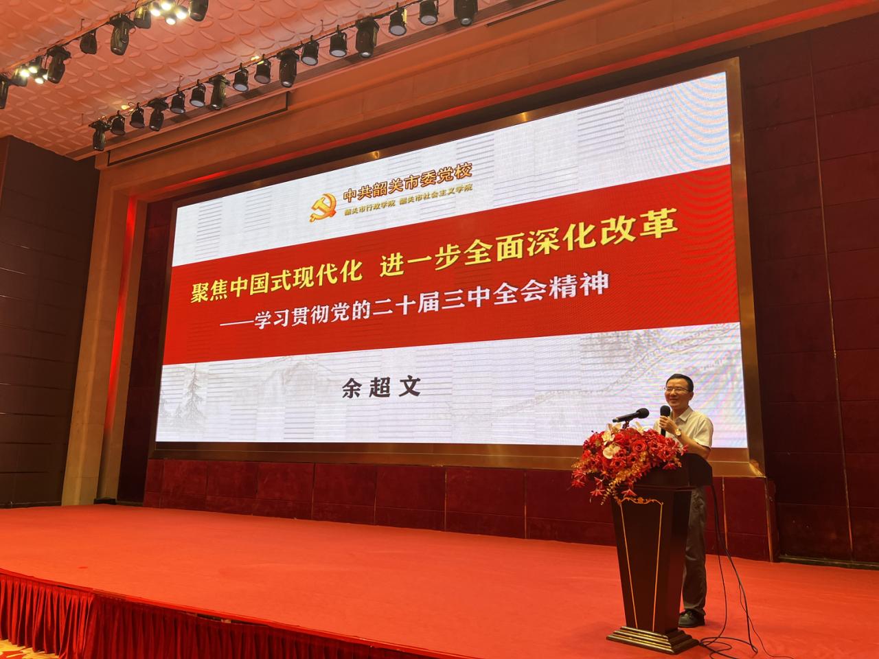 为深入学习贯彻党的二十届三中全会精神,团结引领韶关市侨界把思想和行动统一到全会精神上来,9月13日,广东省韶关市侨联举办侨界群众学习贯彻党的二十届三中全会精神宣讲报告会。韶关市委宣讲团成员、市委党校党史党建学教研部主任、政治学副教授余超文作专题宣讲报告。