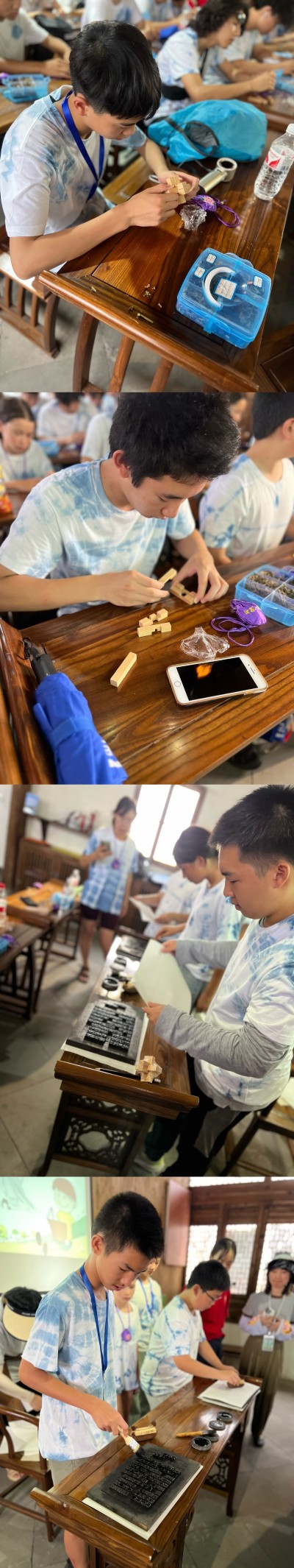 兰溪“溪以兰名,邑以溪名”,自674年建县,已有1300多年的辉煌历史。在这漫漫千载中,孕育了璨若星辰的各种类型的文化,尤以李渔文化、商埠文化、宋韵文化、耕读文化等四大文化形态最为突出。营员们乘船夜游兰江,感受金华兰溪的千年文化脉络、解读兰溪古诗、体验三江六岸码头文化。在兰溪市博物馆,学习碑拓、印染、雕版印刷等传统技艺。