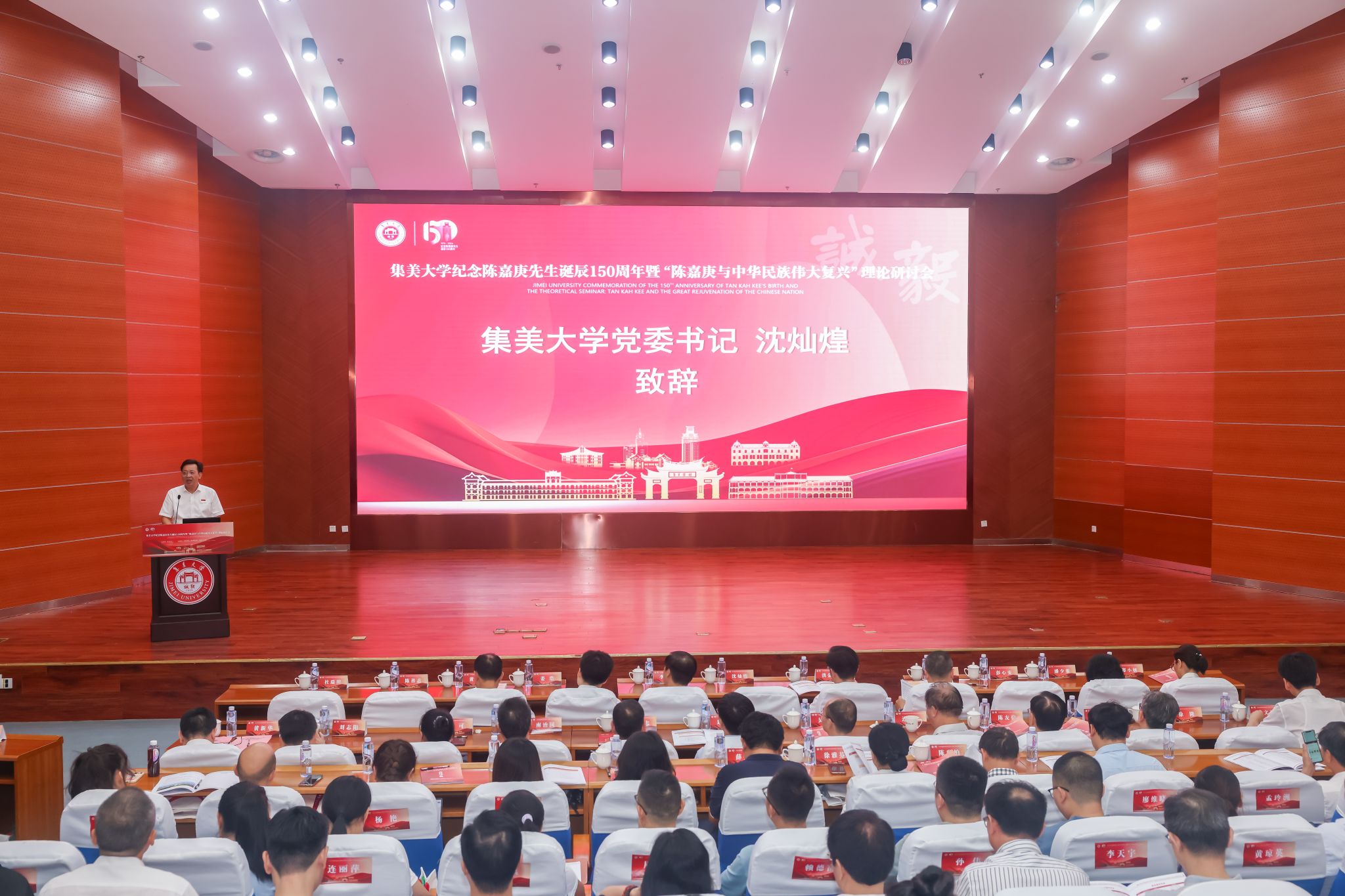 为纪念著名爱国华侨领袖陈嘉庚先生诞辰150周年,传承弘扬新时代“嘉庚精神”,9月28日上午,集美大学在尚大楼105举行“陈嘉庚与中华民族伟大复兴”理论研讨会。福建省委宣传部、省委统战部、省教育厅、省社科联、省侨联以及厦门市委宣传部、市委统战部、市社科联等单位领导出席会议,新加坡亚洲研究学会、马来西亚陈嘉庚基金和林连玉基金等海外专家参会,中共中央党校、上海交通大学、上海财经大学、厦门大学等全国近50家科研院所、高等院校、新闻媒体等单位的百余名专家学者参与研讨。校党委书记沈灿煌、福建省社科联秘书长洪金镖出席并致辞,校党委常委、副校长黄新华主持开幕式。
