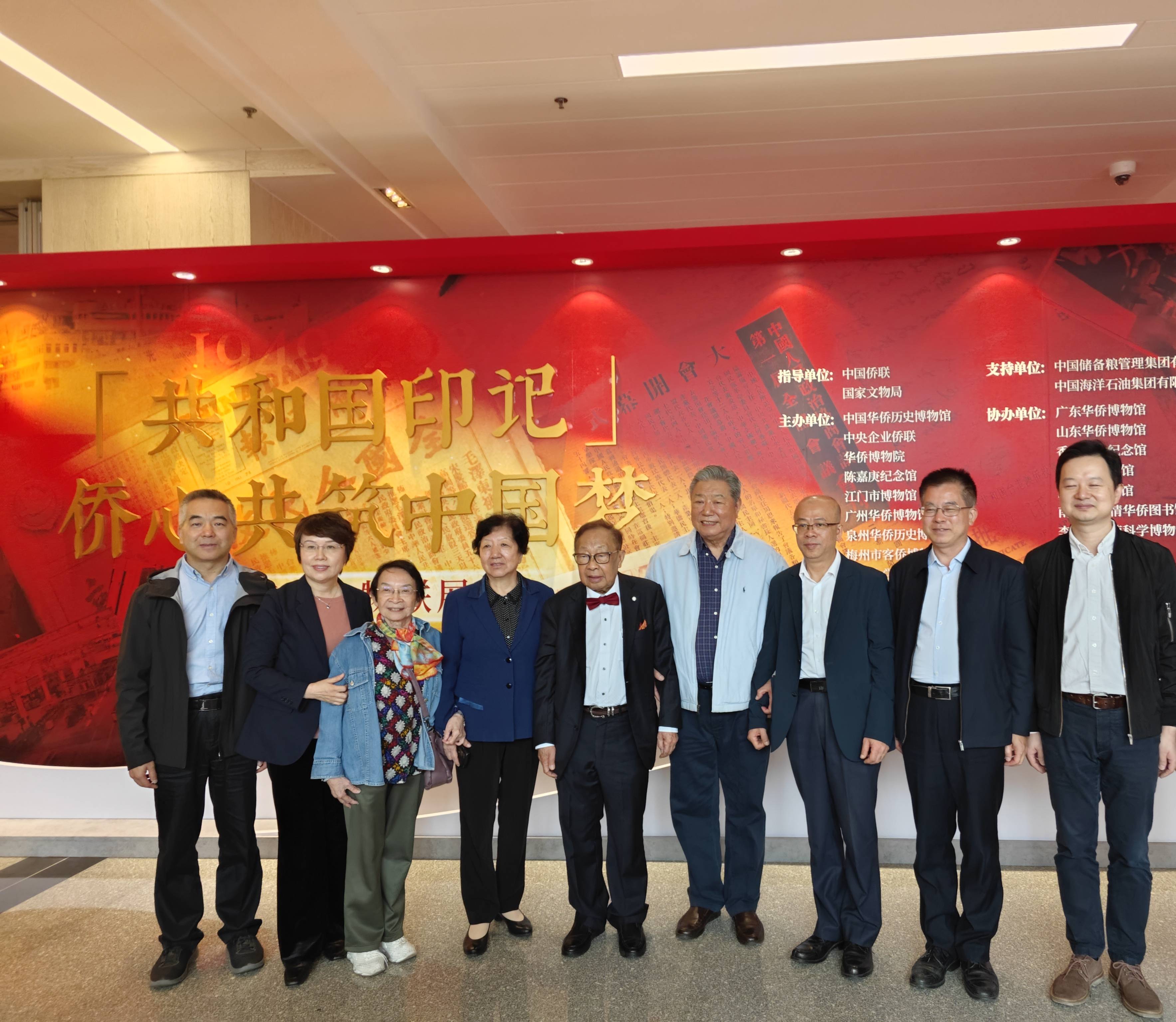 在座谈会现场,陈院士向中国华侨历史博物馆捐赠了自己的学术论著以及参加国内外活动的各种聘书、证书、证章等珍贵物品。座谈会在大家齐唱《歌唱祖国》的歌声中结束。与会同志还共同参观了“共和国印记——侨心共筑中国梦华侨文物联展”并合影留念。
