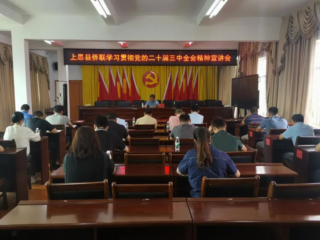 会议要求,要认真学习、深刻领会党的二十届三中全会的各项决策部署,以实际行动推动全会精神落地落实,真正做到学深悟透,发挥独特优势,做好宣传阐释,向全县归侨侨眷以及海外侨胞宣传大会精神,把侨界的智慧和力量凝聚到全会精神上来。