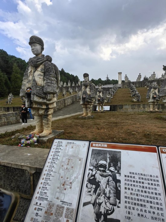 英魂无言,松涛阵阵。在松山抗战遗址,采访团一行向抗战英烈敬献鲜花,怀着激动的心情探访了目前保存最为完好的二战战场遗址。松山战役纪念碑前的中国远征军雕塑群由老兵方阵、娃娃兵方阵、炮兵方阵等13个雕塑方阵402座雕塑组成,古榕树上还保留着当年的弹孔,向今天的人们诉说着当年战役的惨烈。“我在参观中国远征军雕塑群时,巧遇一名穿着粉色衣服的女孩穿梭于娃娃兵方阵里,给塑像手里塞糖果。我看到在庞大的方阵里,塑像的手里、脚下,甚至是‘枪托’里,都塞满了五颜六色的糖果和零食。我想,这包含的不仅是人们对抗战英雄们的缅怀,更多的是心疼,他们用最直接和最质朴的行动在诉说着和平年代的人们对这些先烈们的感激之情。”采访团成员、尼日利亚西非统一商报副社长王淑华感动地说道。