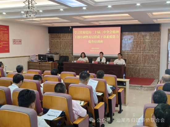 为学习贯彻党的二十届三中全会、省委十三届五次全会和第十一次全国归侨侨眷代表大会精神以及市委八届八次全会精神,传承弘扬“嘉庚精神”,进一步提升全市侨联干部队伍理论水平和业务能力,做好新时代“侨”的文章,10月16日,汕尾市侨联在市城区举办学习贯彻党的二十届三中全会精神专题培训暨基层侨联干部素质能力提升培训班。省侨联基层建设部(权益保障部)部长林建光为学员专题授课,汕尾市侨联党组书记、主席吕海虹作开班动员,汕尾市侨联领导班子、全体干部职工,各县(市、区)侨联主席、办公室负责人,第三届侨联委员,基层侨胞之家、侨联工作站负责人约40人参加。