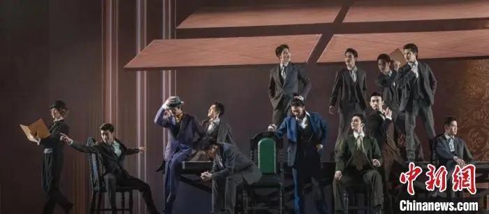 该剧将现代舞蹈与传统闽南元素、民国风格等时代特色巧妙融合,既展现出闽南风情舞蹈刚劲有力的动作和明快的节奏,又融入了现代舞蹈的流畅与多变。舞者们经过长时间的排练,他们身穿西服、戴着礼帽、手持手杖的复古范儿,群舞时气场磅礴,独舞时轻盈飘逸,几段精彩的双人舞兼具力量和美感,淋漓尽致地呈现舞蹈的情感和意境,为观众带来强烈的感染力与视觉冲击力。