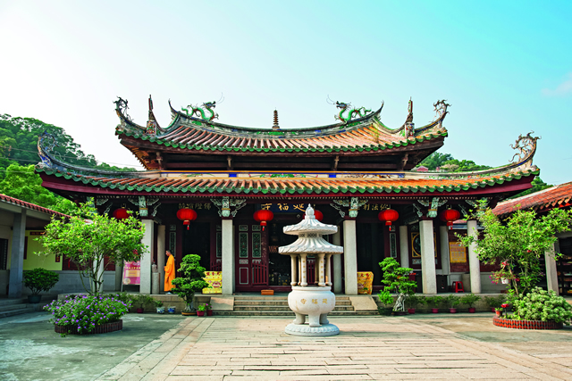 “晋太康年间(太康九年,288)建,去山二里许。唐大历三年(768),移建今所,寺额欧阳詹所书。大中五年(851)赐名建造寺。”这是清乾隆《泉州府志·坛庙寺观》转引《名胜志》中记载的泉州最早的佛教寺庙建筑——延福寺,因九日山而建,今址位于九日山南麓。相比其香火鼎盛,这间佛教寺庙之中藏着的一尊民间信仰之物却鲜为人知。2004年,九日山脚下,原延福寺遗址出土了一尊泉州目前已知最大的风狮爷,花岗岩雕刻,1.23米高,现保存于延福寺内。这尊风狮爷从造型来看稚气十足、憨厚可爱,后腿曲坐,前腿直立,发呈祥云状,寓意了吉祥。这种单身曲坐直立的造型在泉州可以说是罕见的,专家推测它是泉州资历最老的风狮爷,雕刻年代至迟为五代。时至今日,在泉州的街头巷尾,或是路口要冲,或是沿海边陲,随处可见风狮爷的身影,这是一种闽南特有的风狮爷文化。