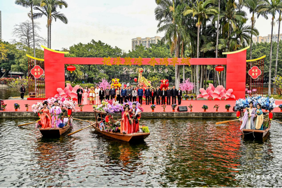 广州花市有悠久的历史,荔湾区更是素有“岭南第一花乡”的美誉。广府人爱花、买花的民俗由来已久,据传唐末南汉时就已出现花墟。荔湾在挖掘水上卖花历史的基础上,推出了“水上花市”,成为“广州过年、花城看花”的新热点。荔湾湖上,一艘艘结合岭南花卉、广府文化、蛇年主题、荔湾“水秀花香”IP的特色花船在水上徐徐行进,船上装饰着五彩斑斓的花朵,仿佛移动的花园,生动再现千年花墟花渡头的热闹场景。