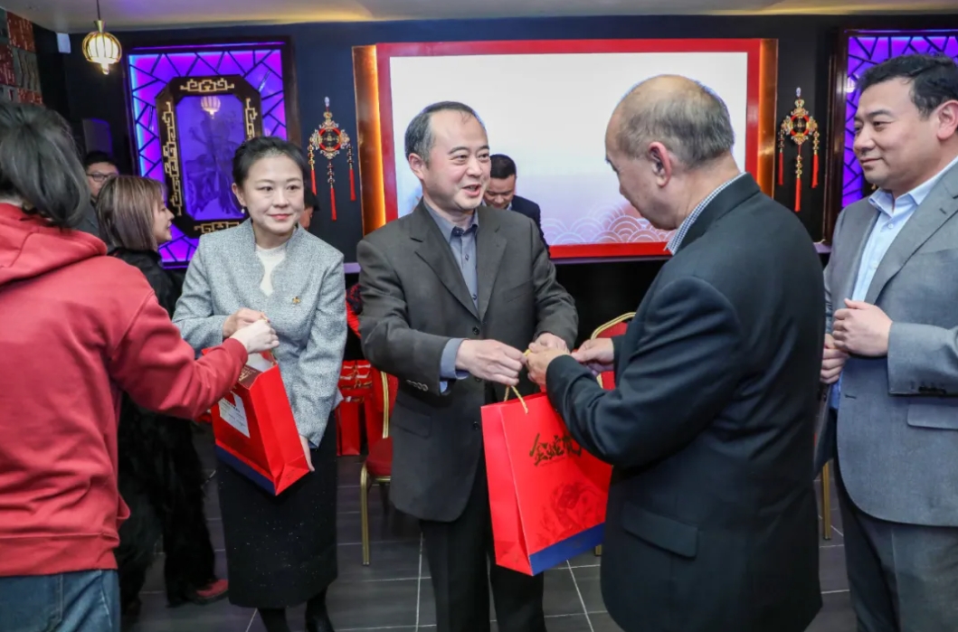 中国驻爱尔兰使馆开展了慰侨活动,向出席联欢会的华侨华人发放了春联、挂历、小食品和慰侨春节“暖心包”。
