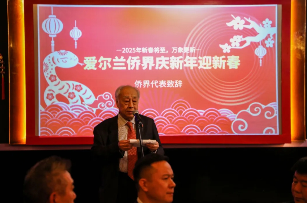 赵希源大使表示,2024年,是中国发展史和中爱关系发展史上不平凡的一年。广大在爱同胞为爱尔兰的经济发展、文化交流和祖国建设贡献了自己的力量。希望广大侨胞积极促进中爱全方位合作,为推动更加紧密的中爱友谊作出更大贡献。