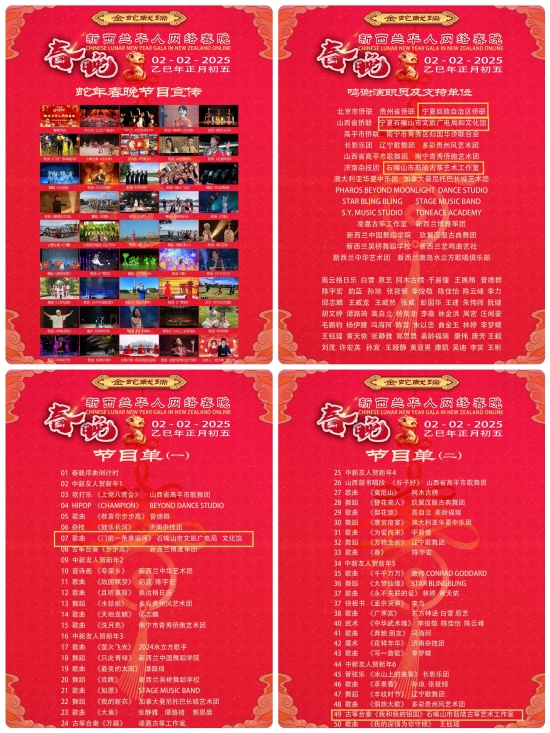 1月24日,在全国人民喜迎乙巳蛇年新春佳节之际,大洋彼岸传来喜讯,经宁夏侨联筛选推荐,由石嘴山市侨联报送的2个文化节目——男声独唱《门前一条幸福河》、古筝合奏《我和我的祖国》,成功入选2025第五届新西兰华人网络春晚。晚会将于2月2日(正月初五),新西兰时间晚7点在指定直播平台以及YouTube、哔哩哔哩、微信视频号等多个媒体平台同时开播。