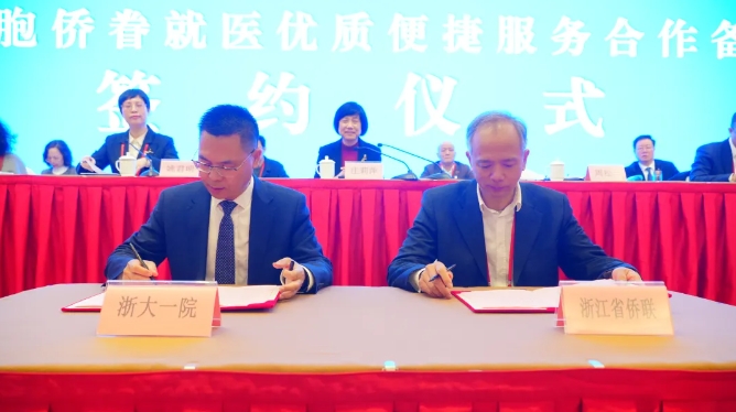 会议期间,省侨联党组成员、副主席周松一,浙大一院常务副书记、副院长邵浙新分别代表双方单位签订了《提升侨胞侨眷就医优质服务合作备忘录》。