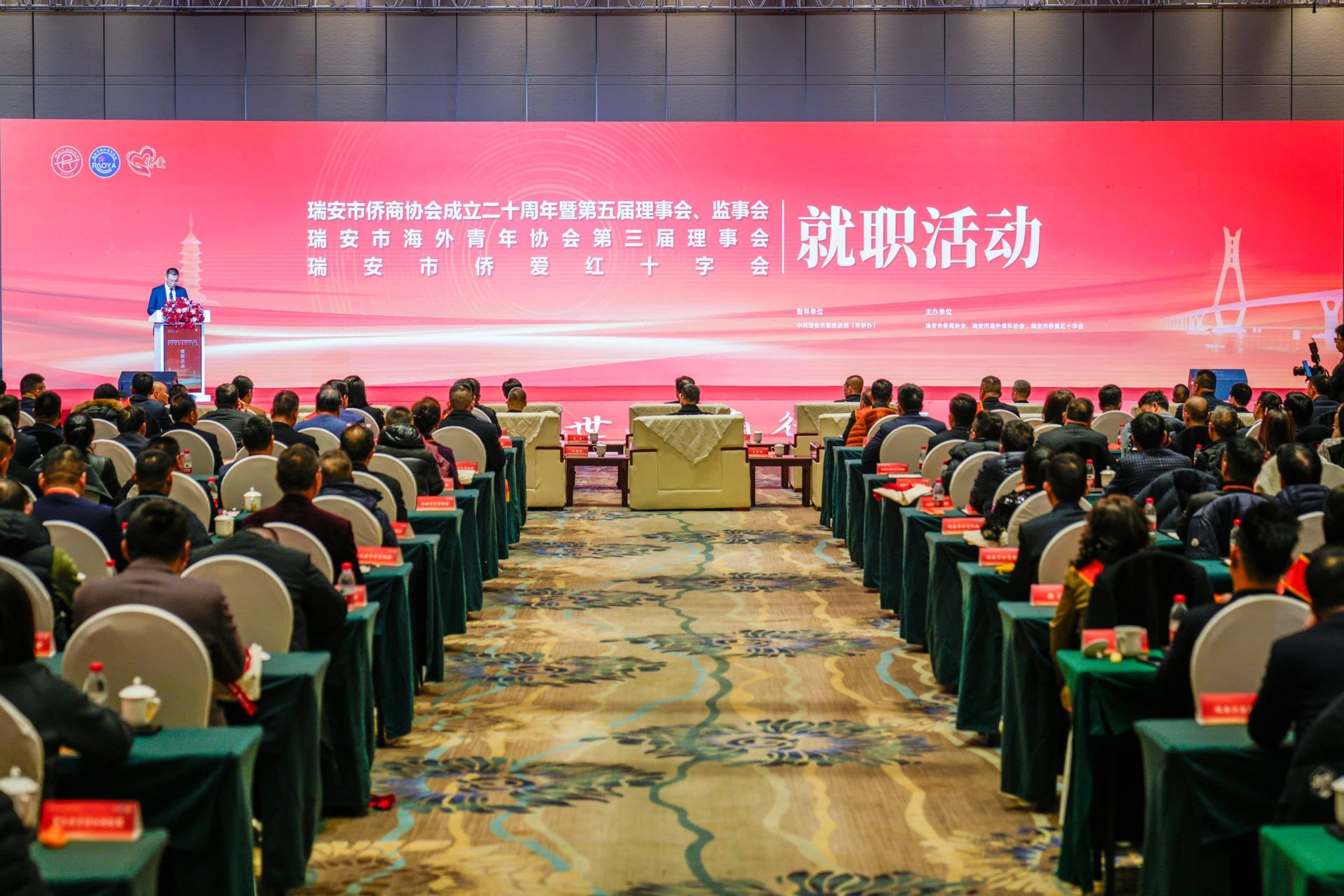 飞云江畔群贤至,侨心聚力启新程。2月6日下午,浙江省瑞安市侨商协会第五届理事会、瑞安市海外青年协会第三届理事会及瑞安市侨爱红十字会就职活动举行。浙江省委统战部二级巡视员杨金坤、中国华侨出版社综合编辑室主任姜军,温州市委统战部副部长周燕伟,温州市侨联党组成员、副主席陈瑜,我市市领导李坚、秦肖、应希克、施巨耀、徐龙升等参加会议。