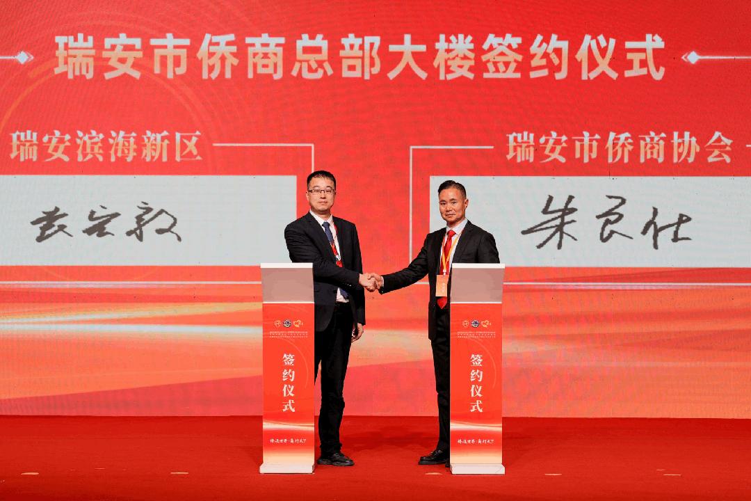 近年来,瑞安市委、市政府努力打造全省“重点侨乡”金名片,积极推进侨商总部大楼、侨产业基金等重点侨资项目。活动现场举行了侨商总部大楼签约仪式、侨产业基金合作协议签约仪式、“侨助共富”瑞安特色产品出海签约仪式及“物流惠侨·助企出海”项目合作启动仪式。