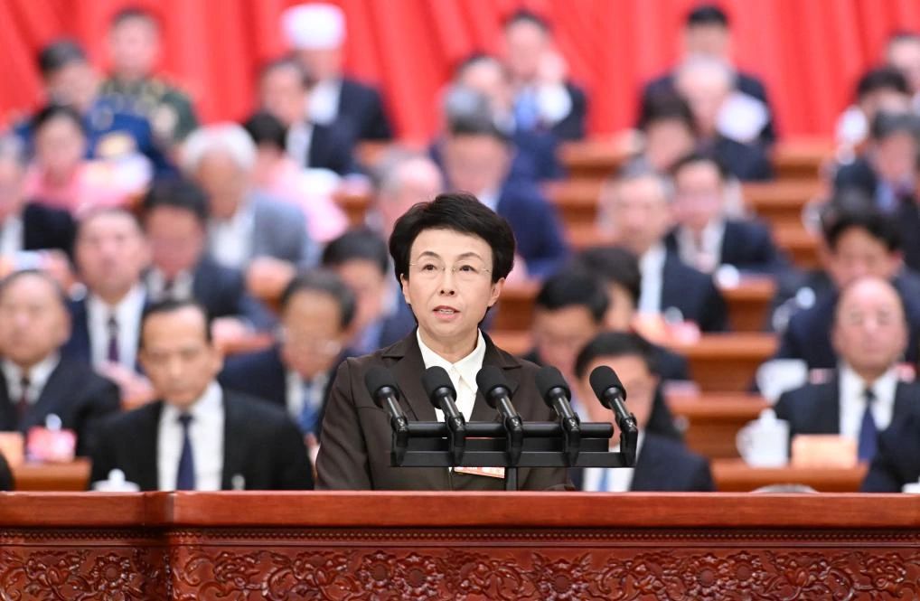 这是程红委员代表民盟中央作《深入推进依法行政 优化营商环境》的发言。新华社记者 饶爱民 摄