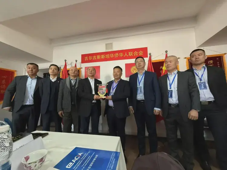 吉尔吉斯斯坦华侨华人联合会领导有:耶尔波力.达巴,段旭熠,罗选成,杨震一同参加。