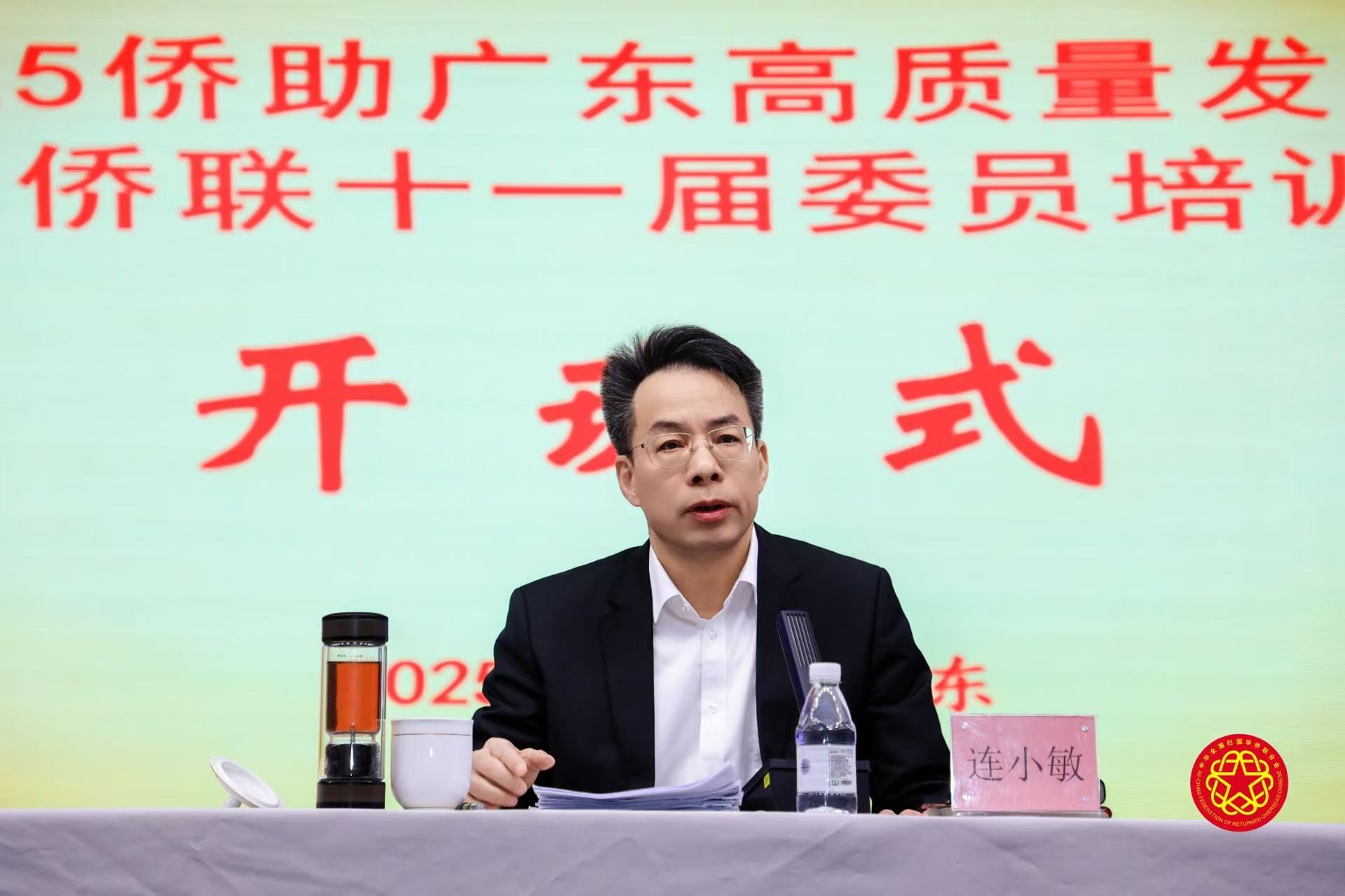 3月19日上午,“2025侨助广东高质量发展”十一届委员培训班在广州开班。党组成员、副主席,直属机关党委书记连小敏出席开班式作开班动员并宣讲全国两会精神。兼职副主席,广东省侨联党组书记、主席李丰出席开班式并致辞。