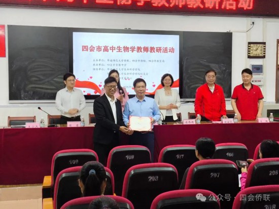 本次教研活动由华南师范大学侨联、四会市侨联、四会市教育局共同主办,四会市华侨中学承办,并得到了华南师范大学生命科学学院、生命科学学院校友会以及四会市教师发展中心的大力支持与协助。活动开始,王小兵校长首先向远道而来的华南师范大学侨联一行致以热烈欢迎,并期待能有更多的教学活动承办机会。张育主席表示本次教研活动是校地侨联组织充分发挥桥梁纽带作用,推动侨联工作高质量发展的生动实践,希望充分发挥高校在教育、科研、人才等方面的优势,促进高校与地方教育文化的深度融合与协同发展。