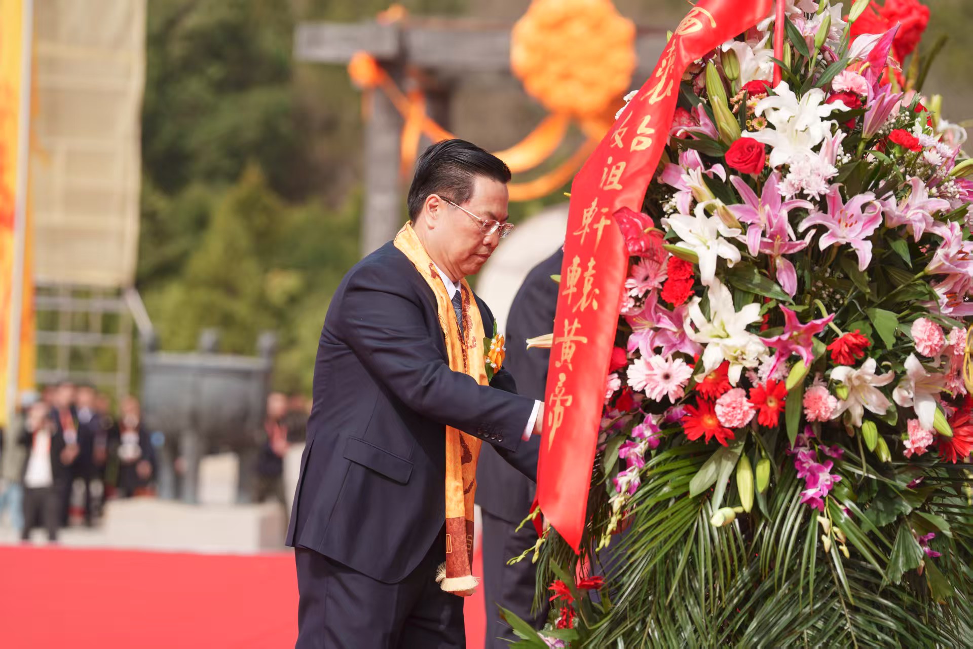 4月4日,乙巳(2025)年清明公祭轩辕黄帝典礼在陕西省延安市黄陵县桥山祭祀广场举行。党组成员、副主席程学源出席公祭典礼,并代表主办方及海内外侨胞向黄帝陵敬献花篮。