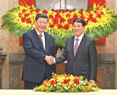 习近平强调,中越双方要以中越友好合作的稳定性和社会主义制度的优越性应对外部形势的不确定性,推动中越命运共同体航船沿着正确航道破浪前行。政治上要把住前行之舵,保持高层战略沟通,加强治党治国经验互学互鉴,共同提高党的领导能力,携手走稳走好各自社会主义道路。安全上要铸牢团结之锚,以两国外交、国防、公安“3+3”战略对话机制升格为契机,持续深化防务和执法安全合作,中方支持越方筹备好越共十四大,支持越方维护国家主权、安全、发展利益。经济上要执稳合作之楫,加强发展战略对接,落实好共建“一带一路”倡议和“两廊一圈”框架对接合作规划,深化铁路、公路、航空多维互联互通,保障产业链供应链稳定畅通,拓展5G、人工智能、绿色发展等新兴领域合作,以新质生产力赋能两国全方位合作格局。人文上要扬起友谊之帆,办好今年“中越人文交流年”系列活动,实施更多“小而美”民生项目,通过文化、旅游、媒体、地方等交流,让中越友好更加深入人心。