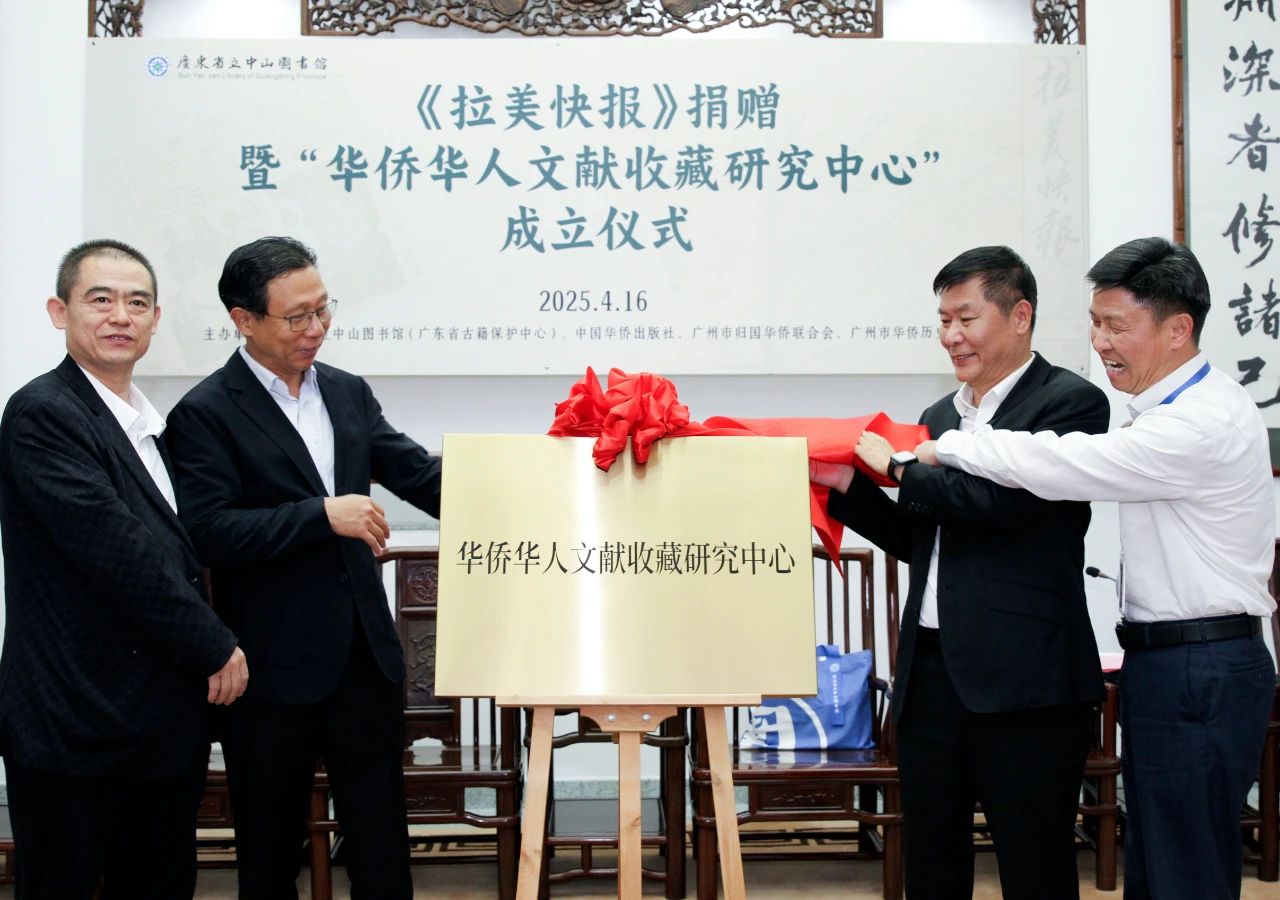 4月16日,《拉美快报》捐赠仪式暨“华侨华人文献收藏研究中心”成立仪式在广东省立中山图书馆举行。广州市归国华侨联合会党组书记、主席卞勇,广东省人民政府侨务办公室原主任吕伟雄,中国华侨出版社综合编辑室主任姜军,广东省立中山图书馆馆长方家忠,广州市华侨历史学会会长林干等出席仪式。