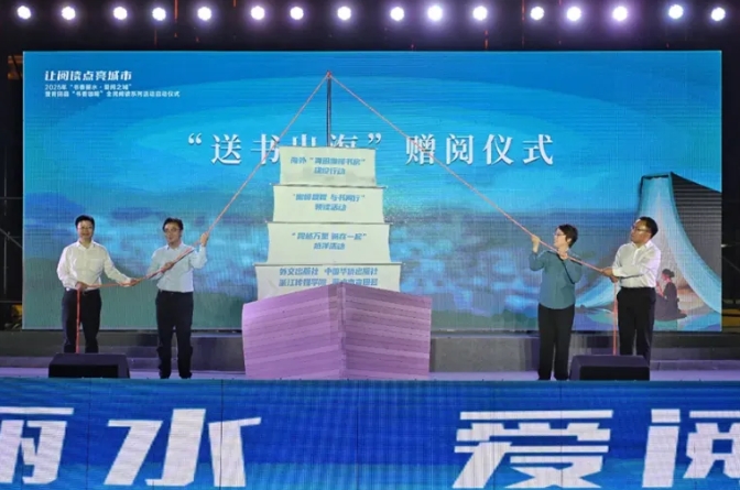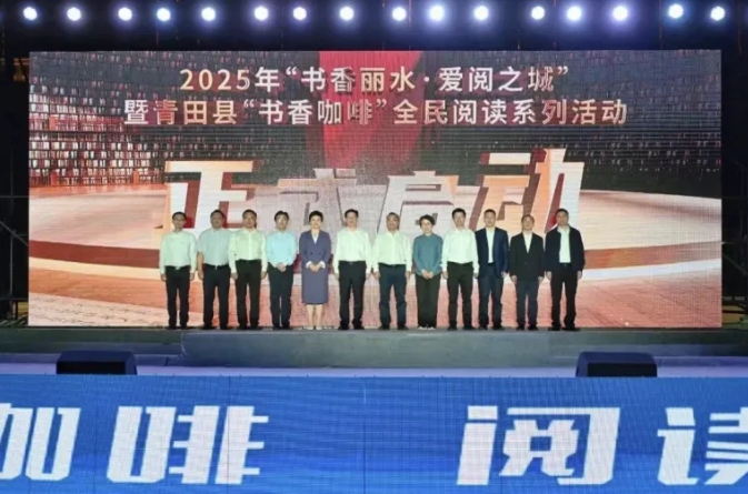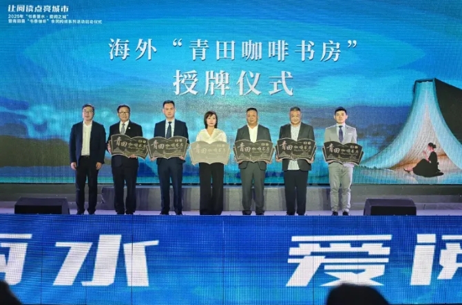 4月28日晚,2025年“书香丽水・爱阅之城”暨青田县“书香咖啡”全民阅读系列活动启动仪式在瓯南街道防洪堤圆形广场盛大举行,铿锵雄壮的诵音、优雅绚烂的歌舞、动人心弦的寄语在激发阅读热情的同时,将活动氛围一次次推向高潮。其中,两场别具意义的仪式——海外“青田咖啡书房”授牌与“送书出海”赠阅仪式,让漂洋过海的“中国好书”成为世界了解中华文化的窗口与桥梁。