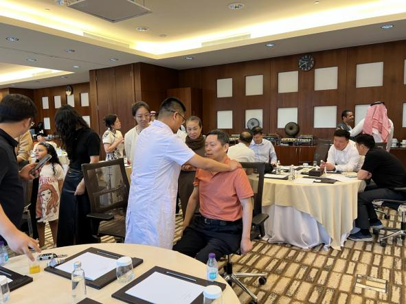 在沙期间,中医团与中国驻沙特阿拉伯大使馆进行了工作交流;拜访了拉希德家族企业的Inaya医学院和吉达市长家族企业NESMA,围绕陕西中医药在沙特发展进行了探讨交流;走访了沙特阿拉伯陕西商会和吉达华人商会等华侨华人社团,听取他们对中医药出海的意见建议,并组织开展了中医暖侨及文化交流活动。