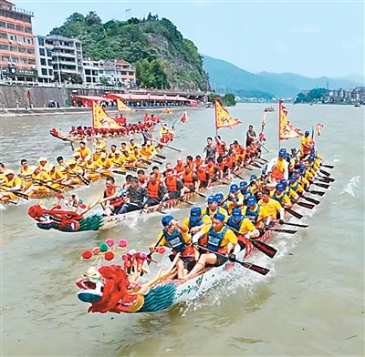 “旌鼓龙舟渡 非遗零距离”龙舟竞渡赛现场。朱光云摄 |