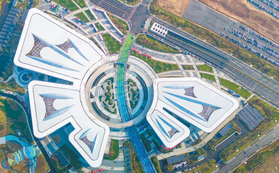 浙江金华金漪湖科创智造产业园云蝶中心项目外景。 胡肖飞摄(人民视觉) |