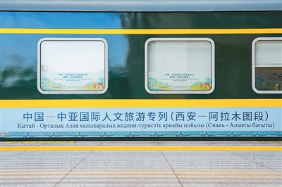 5月29日,中国—中亚国际人文旅游专列由陕西西安始发,一路向西开往哈萨克斯坦阿拉木图。 曹 欣摄(人民图片) |