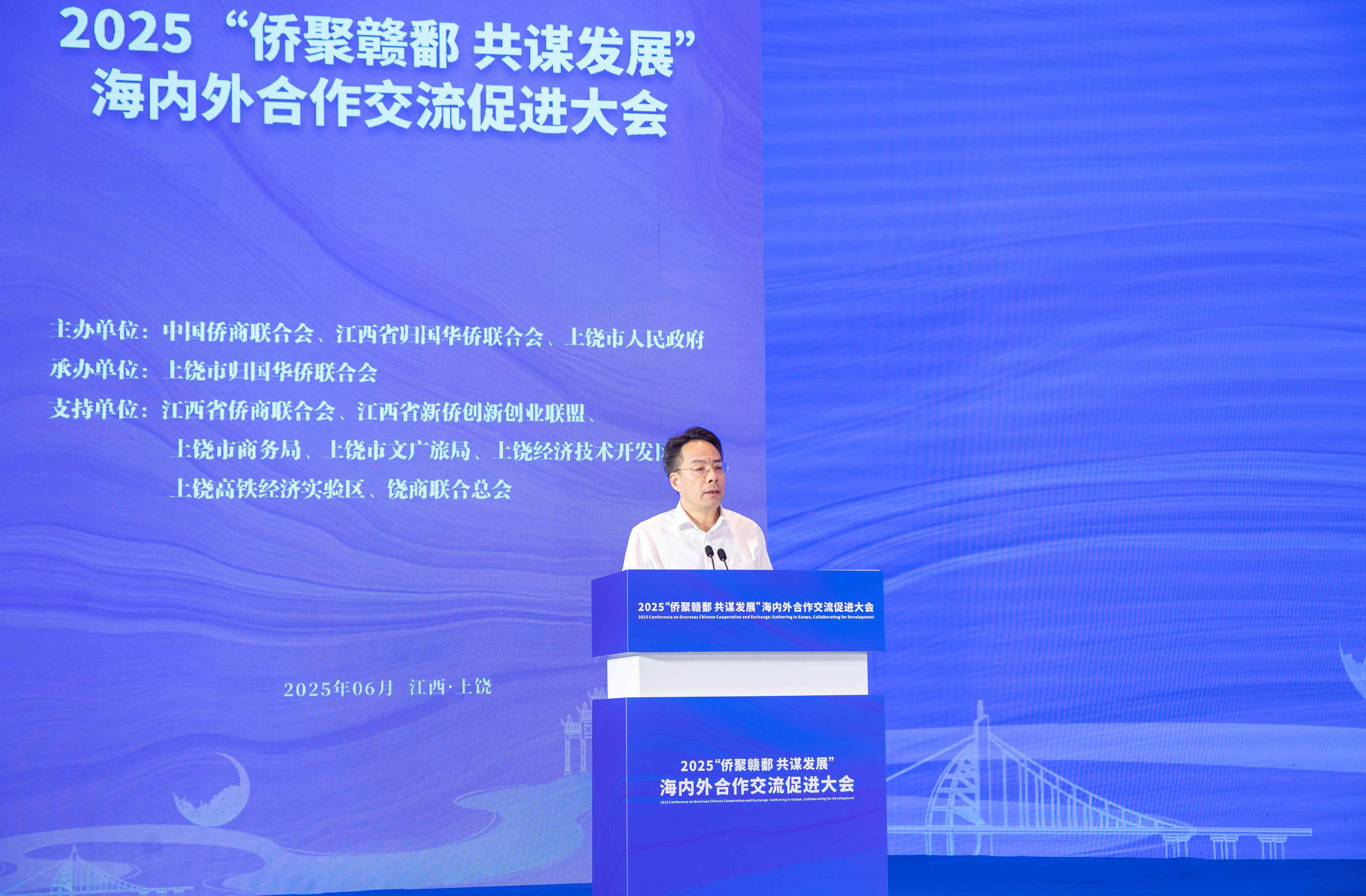 6月17日,2025“侨聚赣鄱 共谋发展”海内外合作交流促进大会在江西省上饶市举办。党组成员、副主席连小敏出席活动并致辞。来自近20个国家和地区的侨商代表等100余人出席活动。