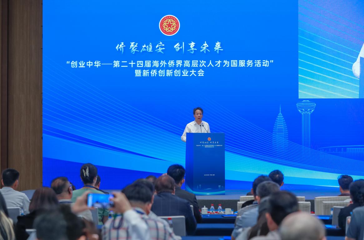 6月24日上午,由经济科技部主办,河北省侨联、雄安新区党工委共同承办的“创业中华—第二十四届海外侨界高层次人才为国服务活动”暨新侨创新创业大会在河北雄安新区开幕。党组成员、副主席连小敏,河北省政府副省长赵新海出席大会并讲话。雄安新区党工委副书记、管委会副主任罗之芹致欢迎辞。大会由河北省侨联党组书记、主席付辉东主持。来自美国、日本、澳大利亚等14个国家的一百余位嘉宾参加会议。