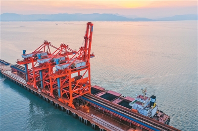 福建省福州市连江经济开发区华电储运码头,在福州边检站民警高效验放后,一艘装载7万余吨煤炭的外轮正在入境靠泊,实现迎峰度夏电煤“零等待”装卸。