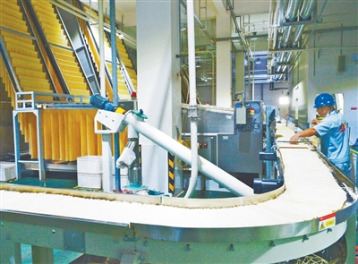 距离口水娃延津厂区不到1公里,新良粮油加工有限责任公司生产的优质强筋面粉,一个电话就能随时装车运到车间门口。“之前,面粉从河南运输到江苏,每吨运费要200到300元。现在,面粉厂就在隔壁,成本直接降一成。”苏周腔说。