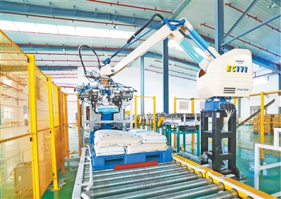 自动化生产车间里,一袋袋射阳大米完成包装。邵 丹摄(人民视觉) |