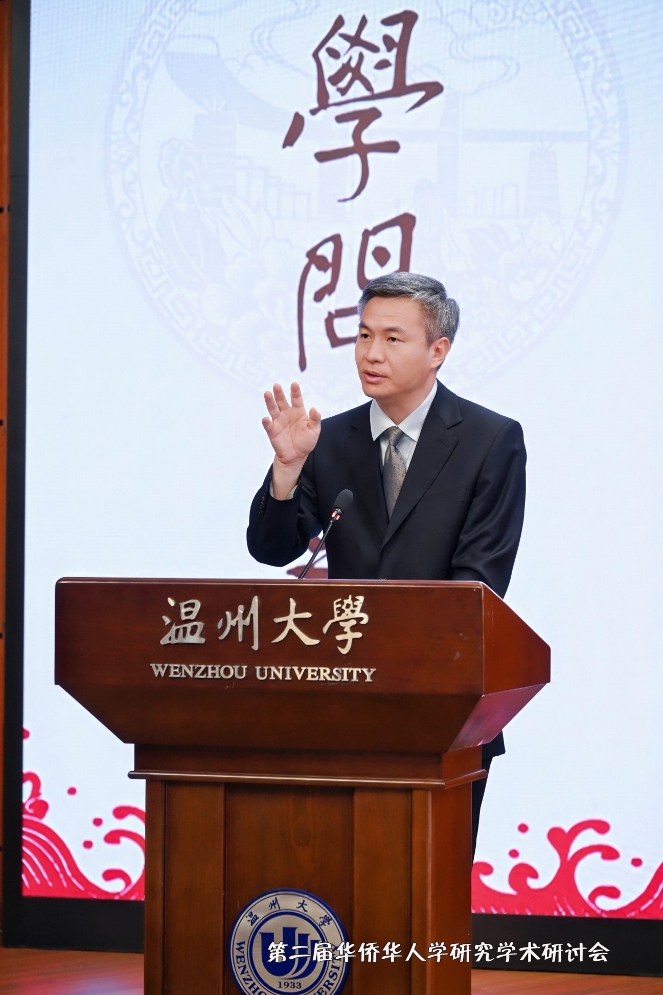 王舜介绍了温州大学侨特色建设情况,指出温州大学因侨而生,因侨而盛,围绕“侨教育、侨研究、侨文化”等持续深耕发展,现已成为全国首个获批华侨华人学交叉学科硕士点的高校,产出了一大批高水平涉侨研究成果。
