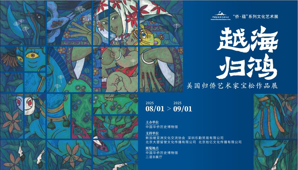 8月1日下午,由中国华侨历史博物馆主办的“越海归鸿——美国归侨艺术家宝松作品展”在侨博开幕。