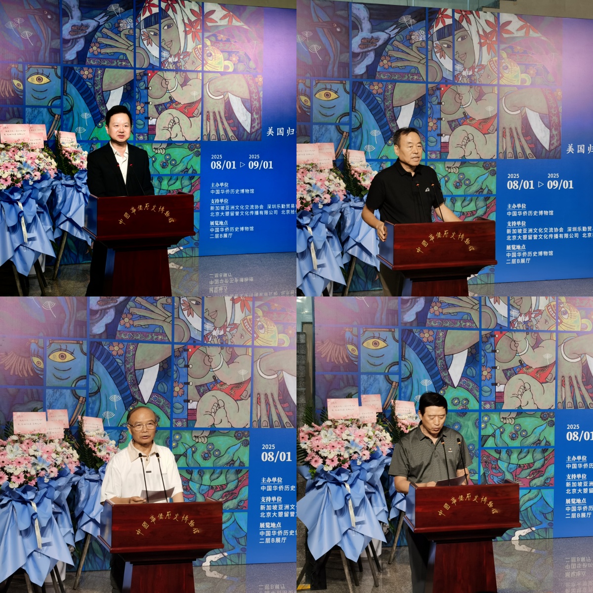 开幕式上,中国华侨历史博物馆副馆长(主持工作)宁一,河北省广播电视局原党组书记、局长王离湘,亚洲文化交流协会执行会长、文艺评论家、作家王谨,全军新闻高评委、原人民武警报社特刊主编肖福恒大校致辞。